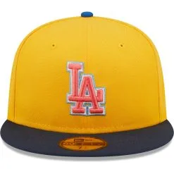 Men’s Los Angeles Dodgers New Era Gold/Navy Dodger Stadium Azure Undervisor 59FIFTY Fitted Hat