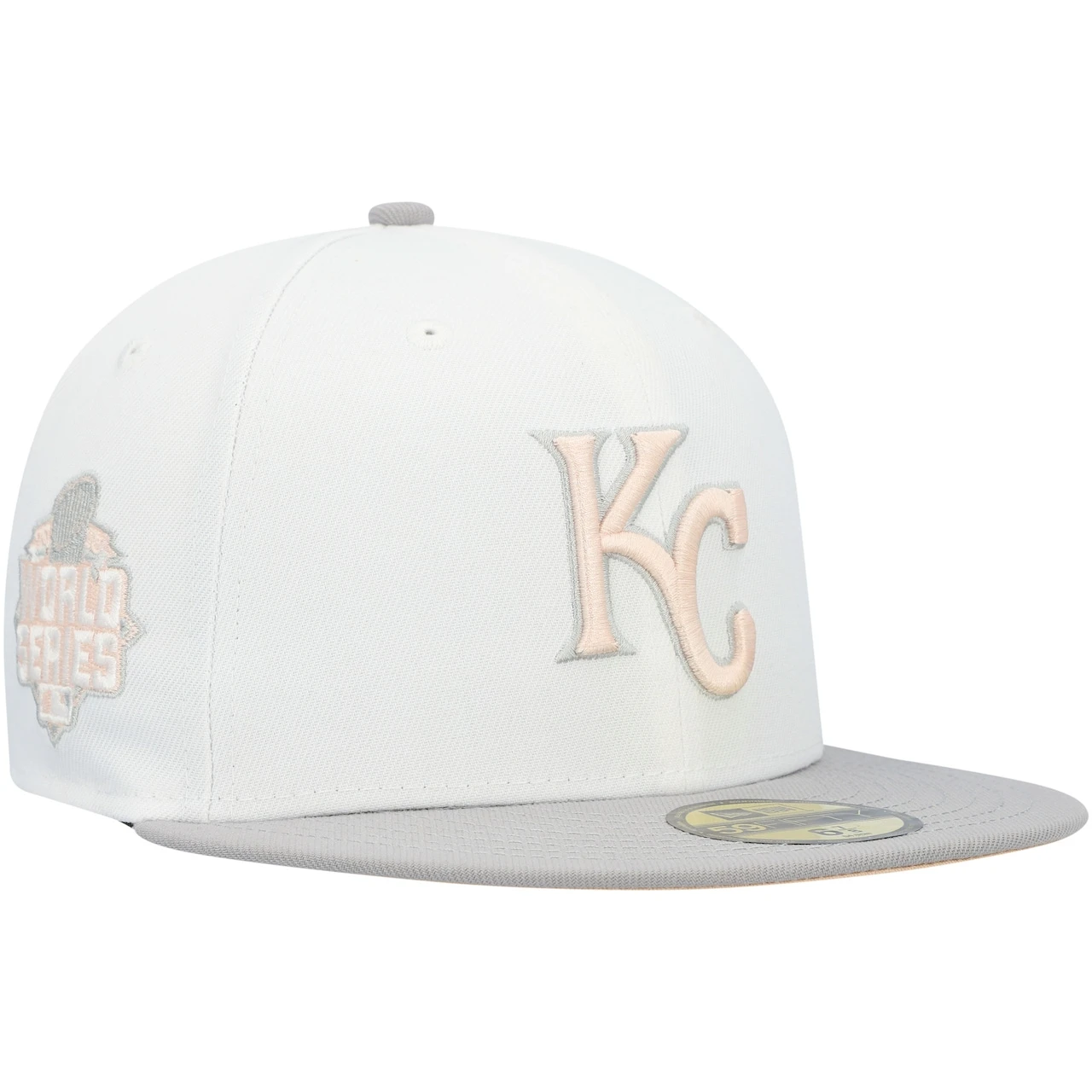 Men’s Kansas City Royals New Era White/Gray 2015 World Series Side Patch Peach Undervisor 59FIFTY Fitted Hat