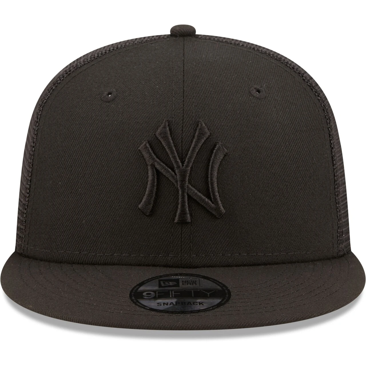 Flip the switch on your New York Yankees fandom to dark mode with this Blackout Trucker 9FIFTY hat from New Era. Its solid design features the New York Yankees logo in raised embroidery and breathable mesh panels. Additionally, the snapback closure easily adjusts to fit you just right.