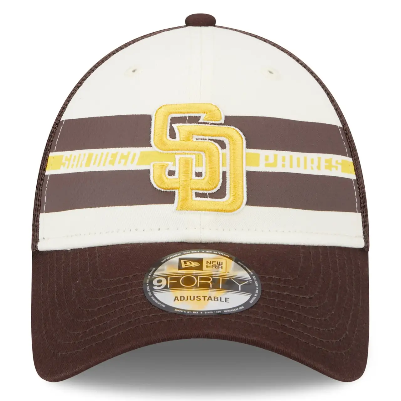 Men’s San Diego Padres New Era White/Brown Team Stripe Trucker 9FORTY Snapback Hat