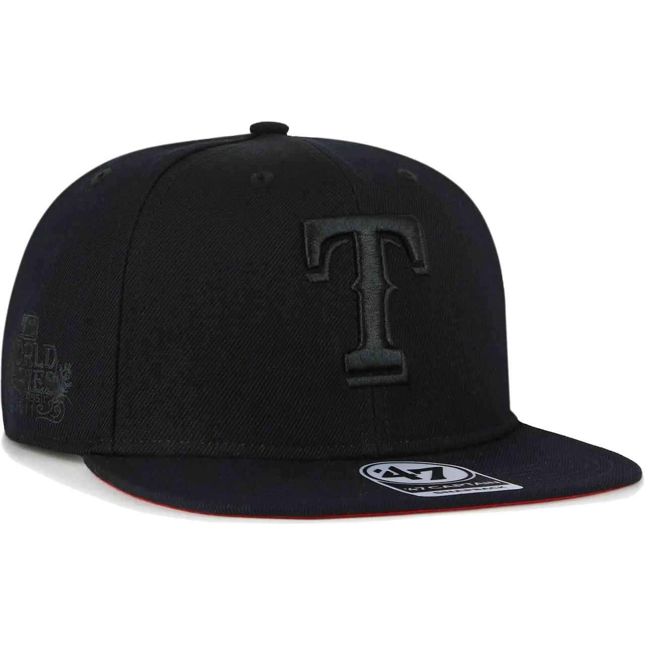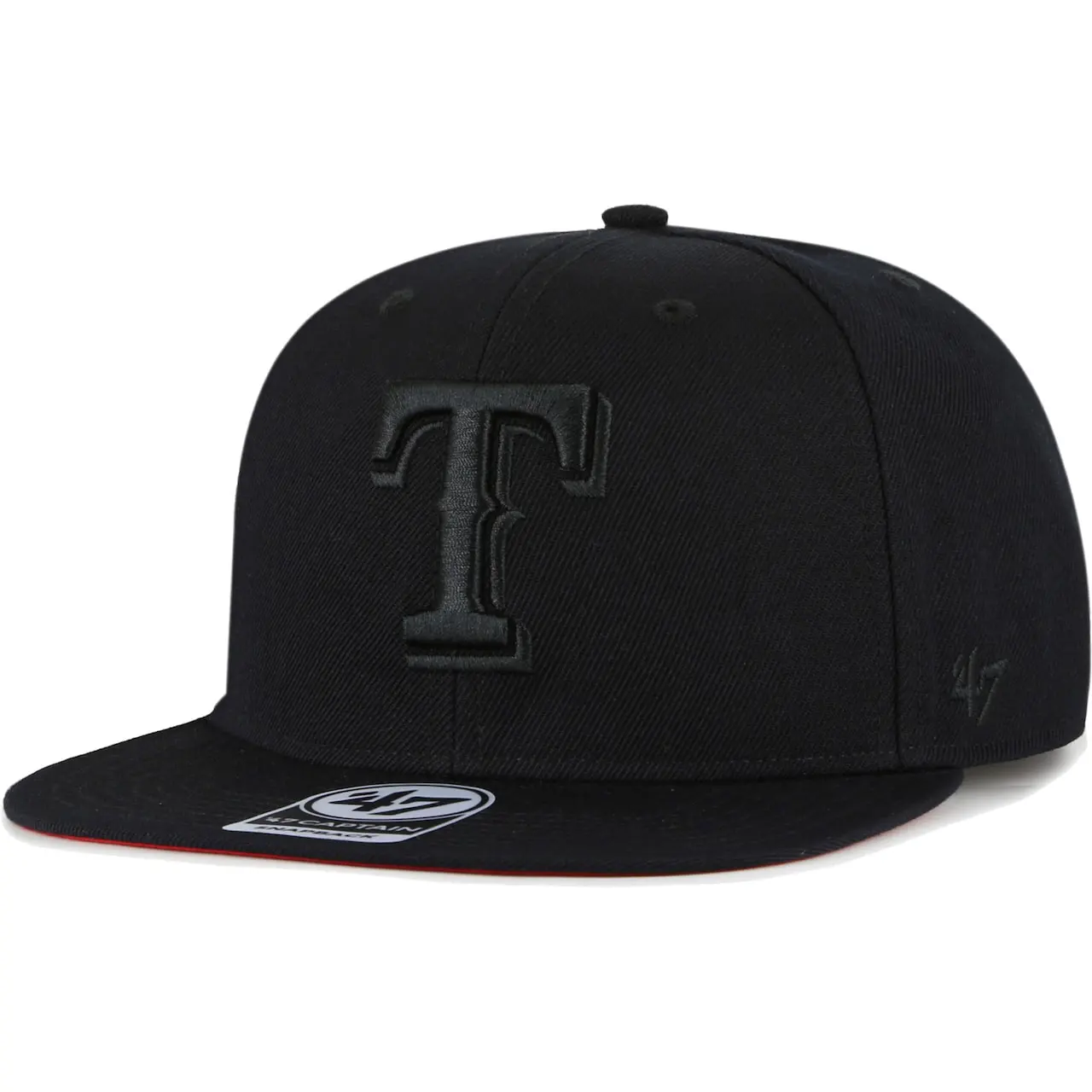 When the Texas Rangers hit the field, add a subtle touch of team spirit with this Black on Black Sure Shot Captain hat. Crafted by ’47, this bold cap features embroidered graphics and a vibrant contrast-color undervisor to further elevate your style and pride. With a snapback closure, classic construction and flat bill, this cap will fit perfectly with any Texas Rangers gear.