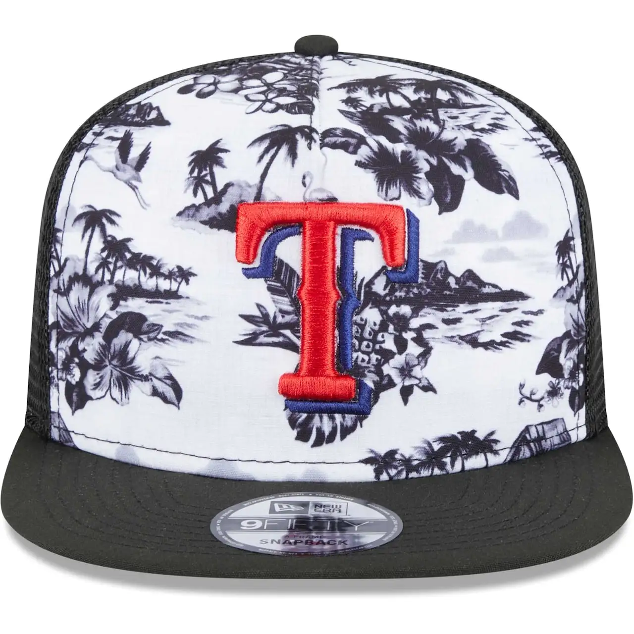 Men’s Texas Rangers New Era White/Black Vacay 2.0 A-Frame Trucker 9FIFTY Snapback Hat
